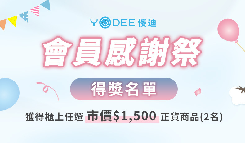 謝謝每一位爸比媽咪與寶貝的熱情參與, 已經抽出本次的幸運得主💛! 恭喜這次得獎者, 你們的支持也是我們持續舉辦活動的最大動力唷 YODEE 優迪 未來也會持續準備更多貼心好禮與親子活動, 持續關注我們,一起陪伴孩子的每個成長時刻~ -- 領獎注意事項: 1.請於 3/31(二)前至指定櫃位完成兌獎,逾期恕不受理。 2.本活動獎項之價值以商品原價計算,恕不折換現金、轉售。 3.依所得稅法規定,中獎金額超過 NT$1,000 元者,須列入個人年度綜合所得稅申報。 領獎時請填寫相關回覆文件,並備妥身分證正反面影本,以利完成領獎作業。 ...