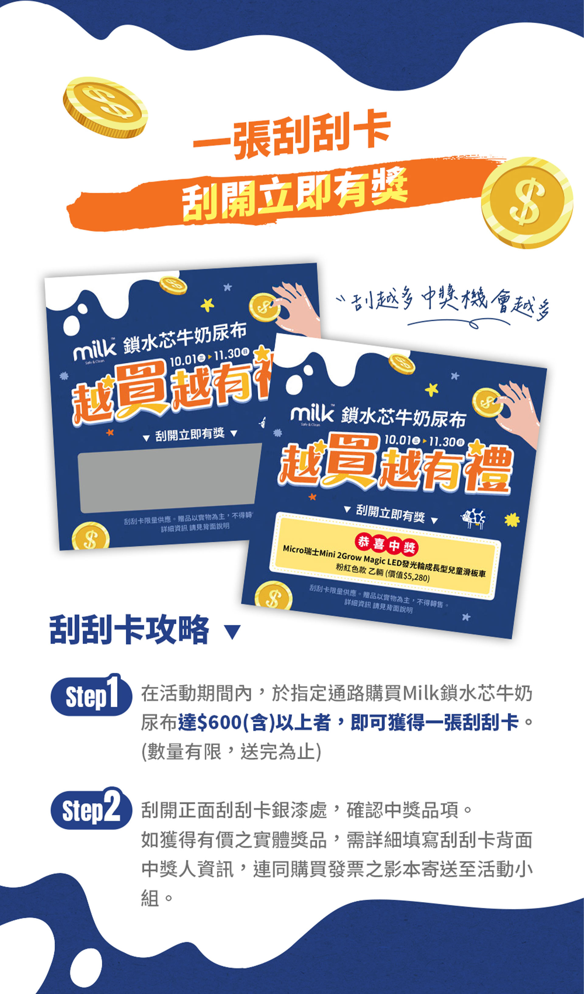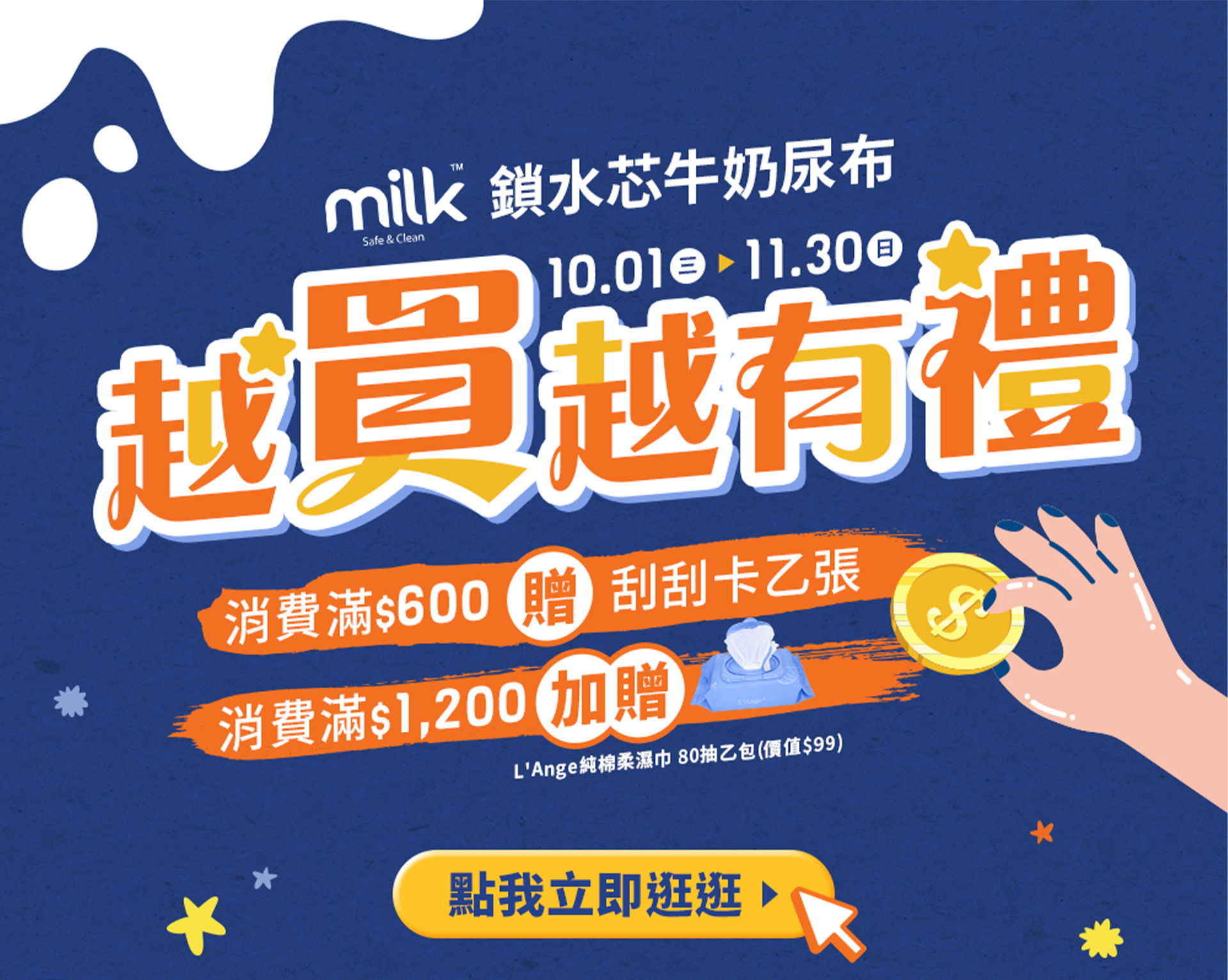• 【買尿布送刮刮卡】M𝗶𝗹𝗸 鎖水芯牛奶尿布,越買越有禮