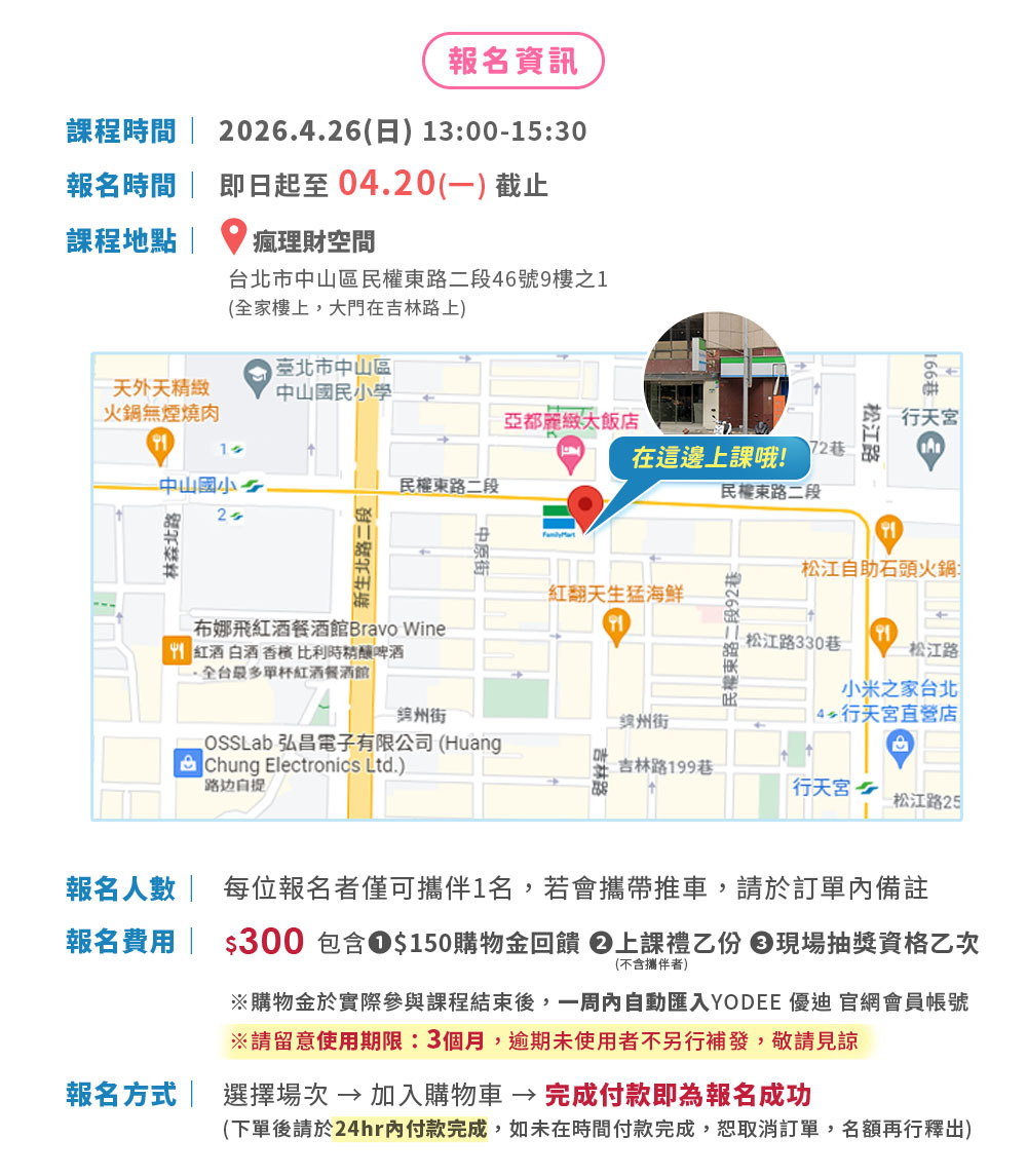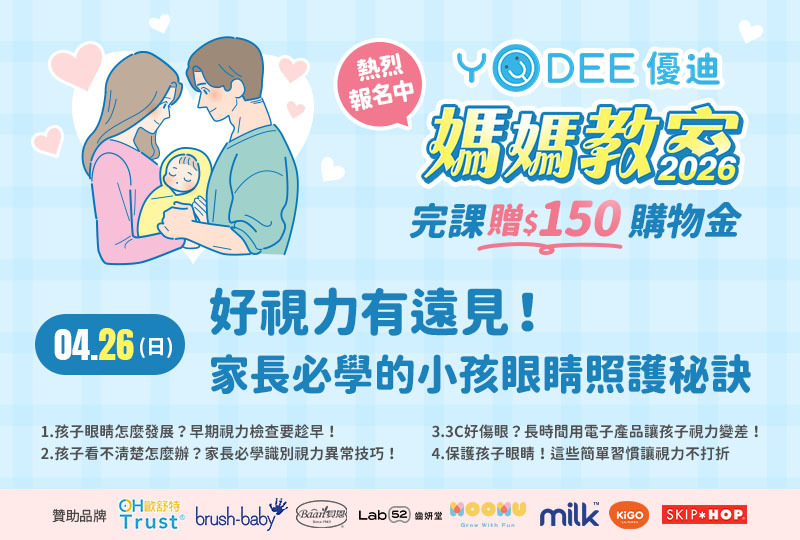【2026 YODEE 優迪 媽媽教室】4/26(日) 台北場 好視力有遠見!家長必學的小孩眼睛照護秘訣