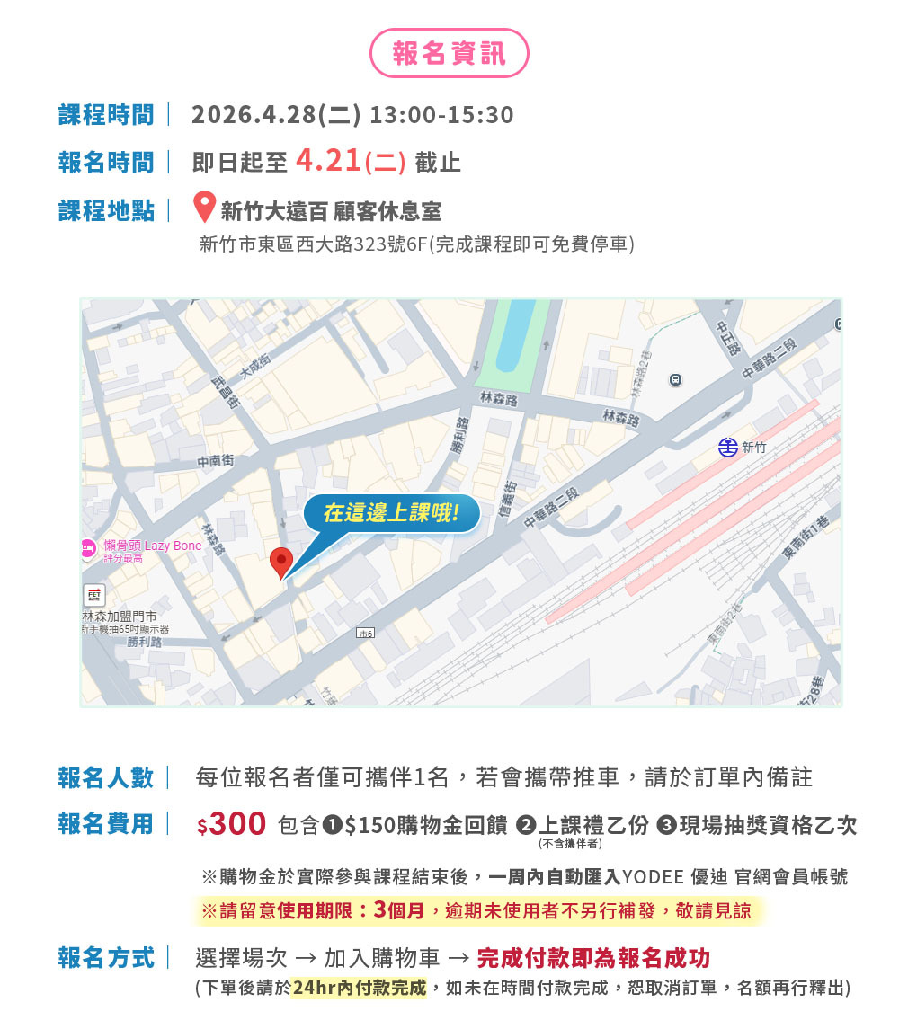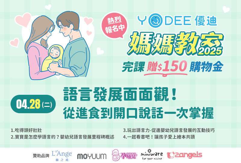【2026 YODEE 優迪 媽媽教室】4/28(二) 新竹場 語言發展面面觀!從進食到開口說話一次掌握