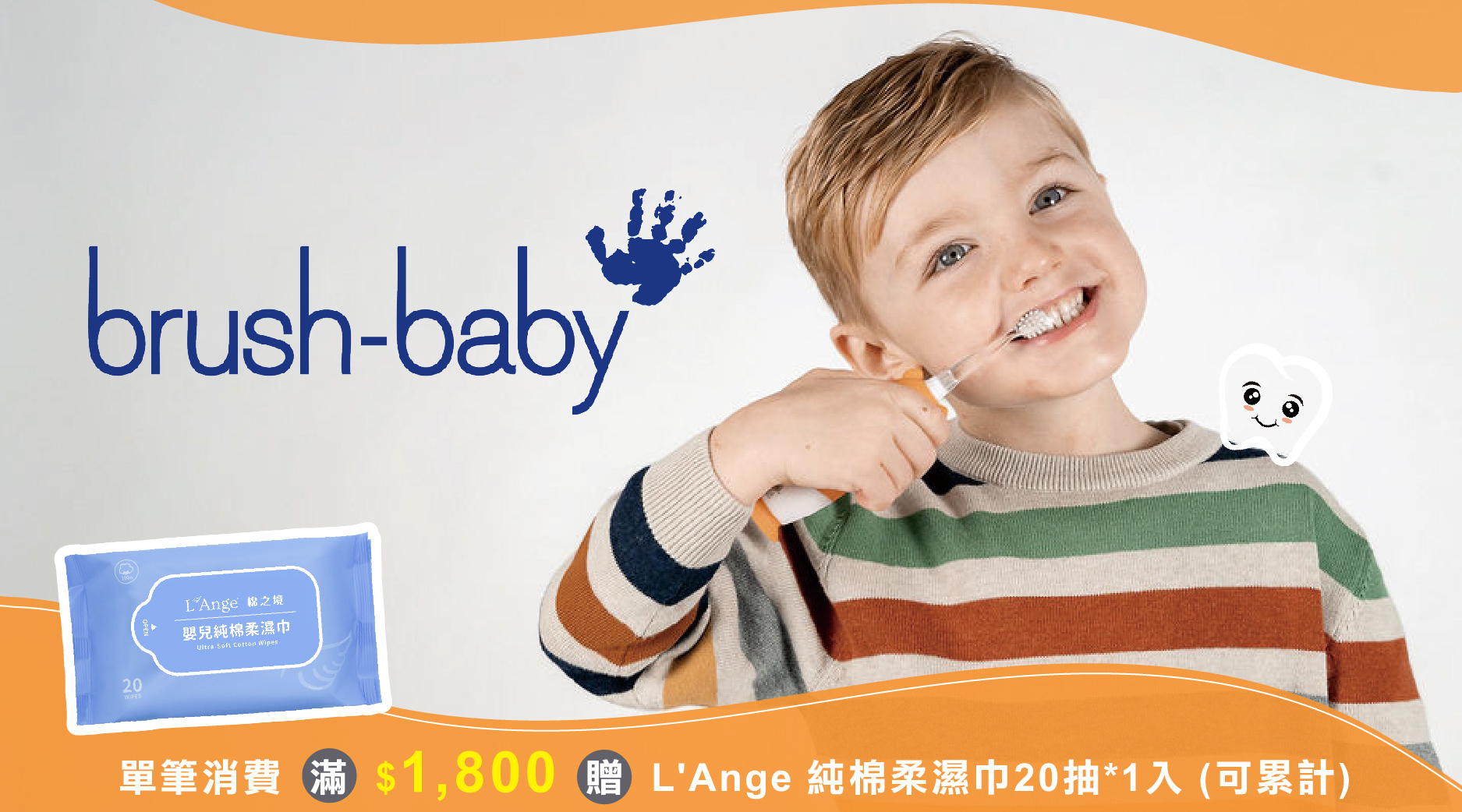 於本頁面單筆消費 滿 $1800 贈 L'Ange 純棉柔濕巾20抽 *1入 (可累計)