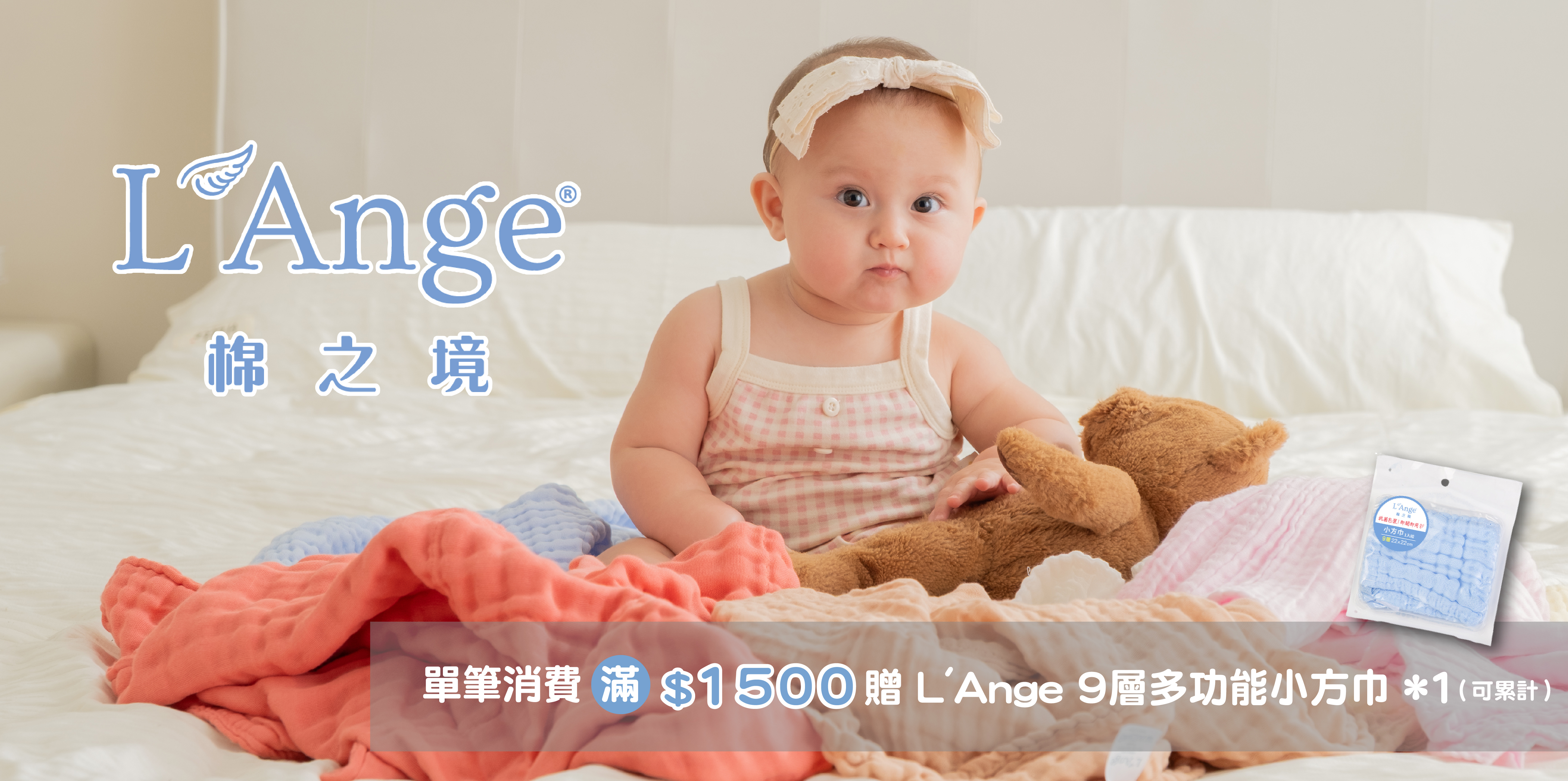 於本頁面單筆訂單消費滿 $1,500 贈 L'Ange 9層多功能小方巾 *1入 (顏色隨機/可累計)