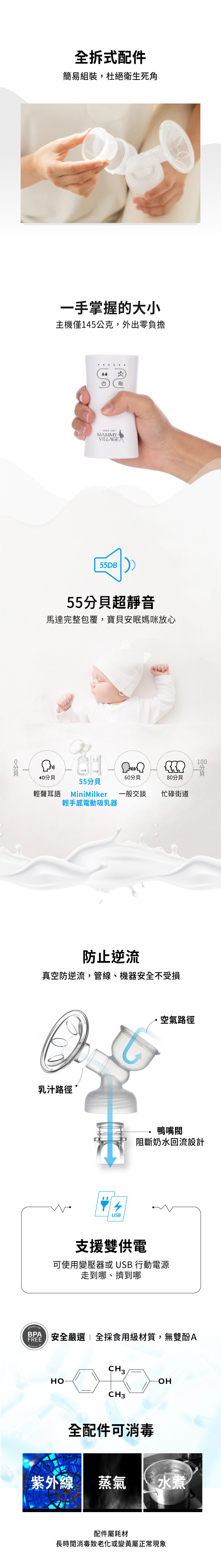 -55分貝超靜音馬達完整包覆,寶貝安眠媽咪放心