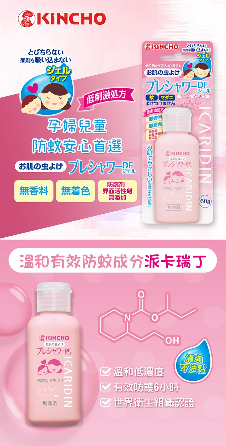 -本產品含派卡瑞丁Picaridin 5%,劑量低,對皮膚負擔小。