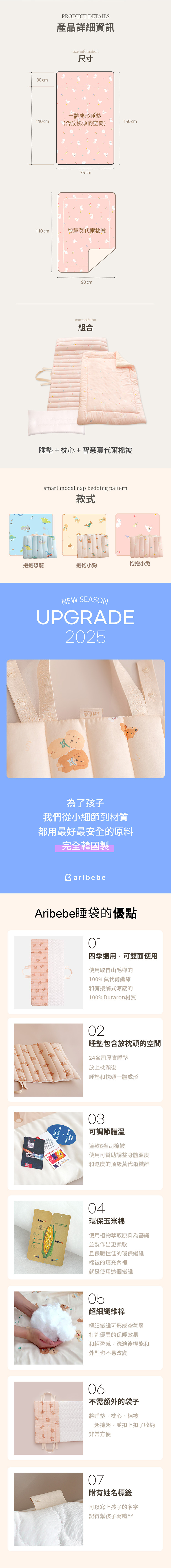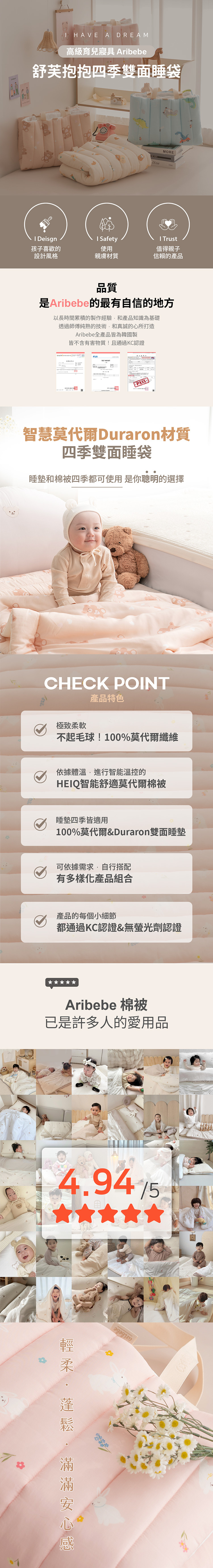 |aribebe 韓國 舒芙抱抱四季雙面睡袋|
