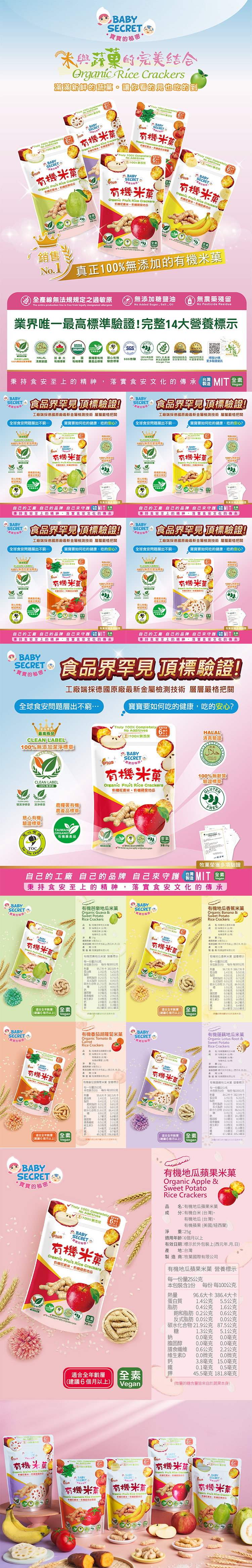 【Baby Secret 寶寶的秘密】有機米菓擁有業界最高標準的檢驗報告,非一季或一年檢驗一次,只要進入有機工廠的任何一批有機原料,團隊都立即採樣逐批送驗,相關檢驗報告都會隨時更新至官網。
