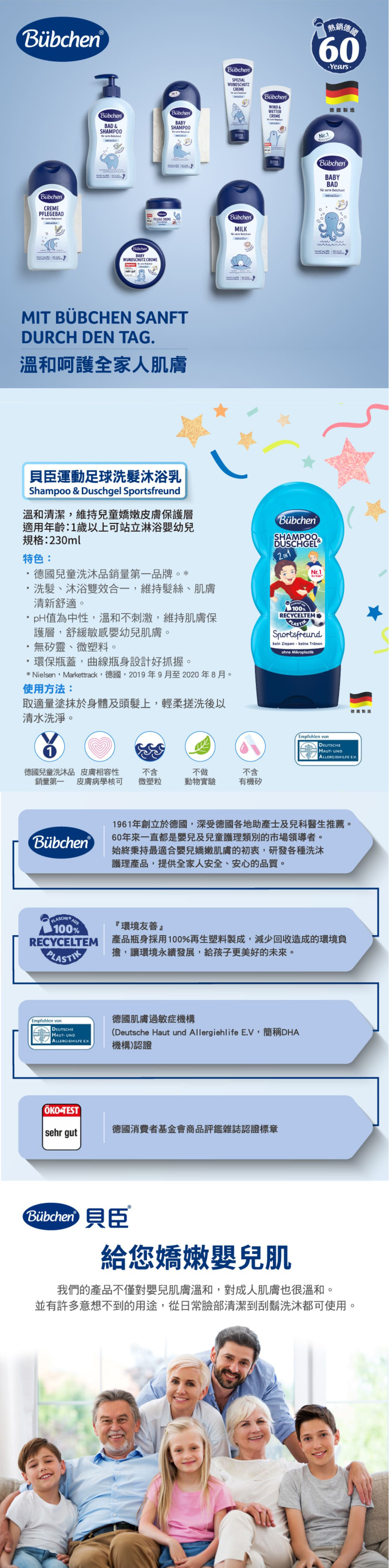 |Bübchen貝臣 德國 運動足球洗髮沐浴乳230ml|