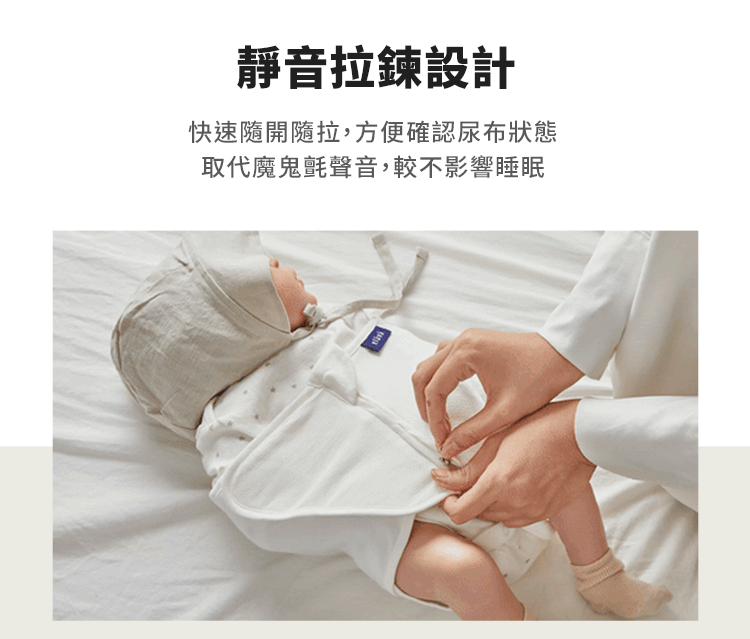 -靜音拉鍊設計,可快速開關更換尿布