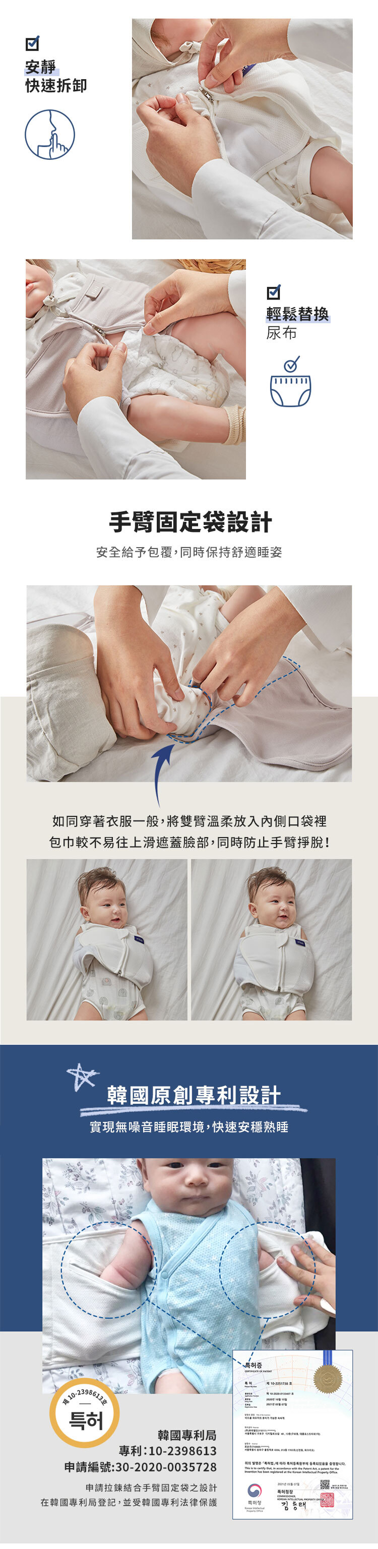 .來自韓國專利設計!可快速完成包覆,還能輕鬆更換濕尿布。
