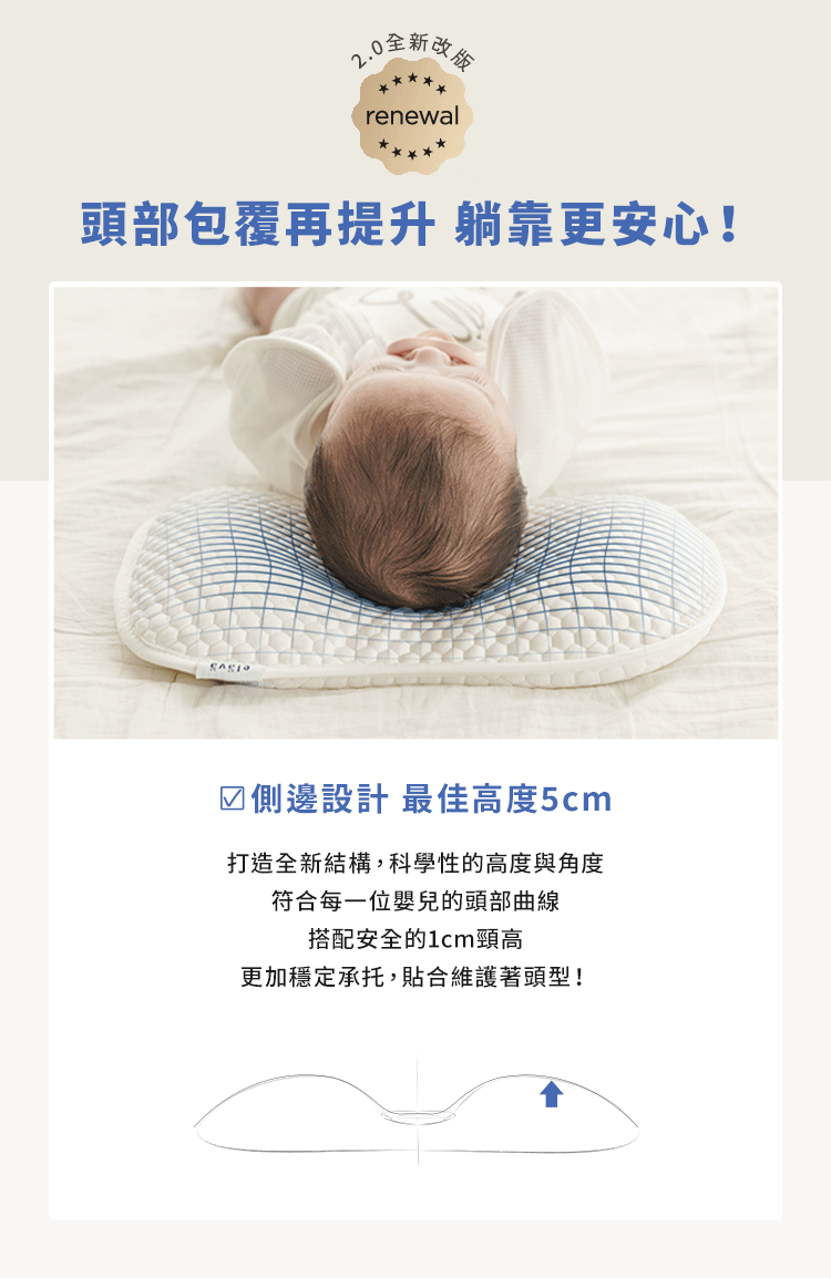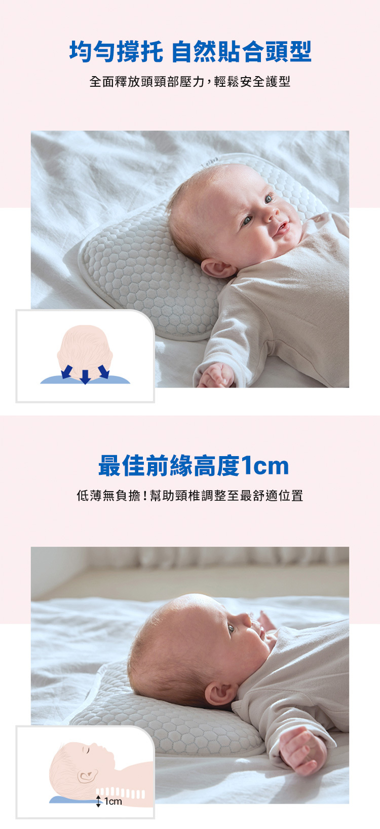 使寶寶睡覺時,頭頸椎可呈自然曲線,輕鬆維護頭型。