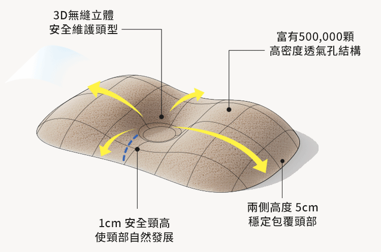 -高密度矽膠枕芯,富有50萬顆透氣孔