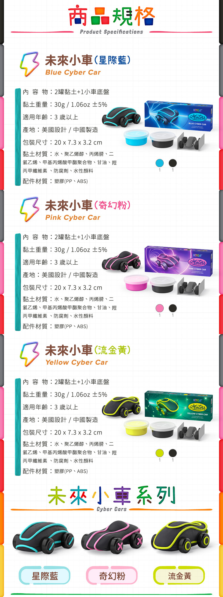 內容物:2罐黏土+1小車底盤