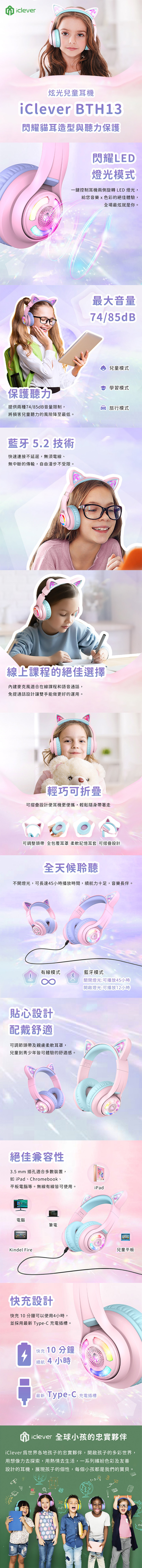 -LED燈光 |可愛貓耳造型,炫麗燈光效果