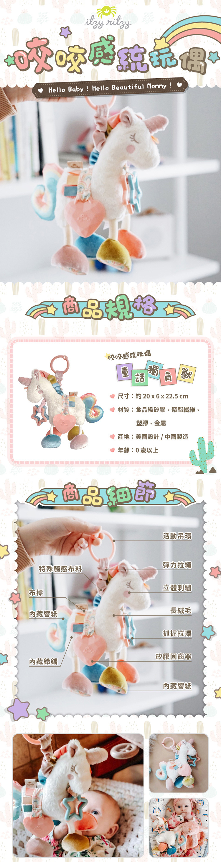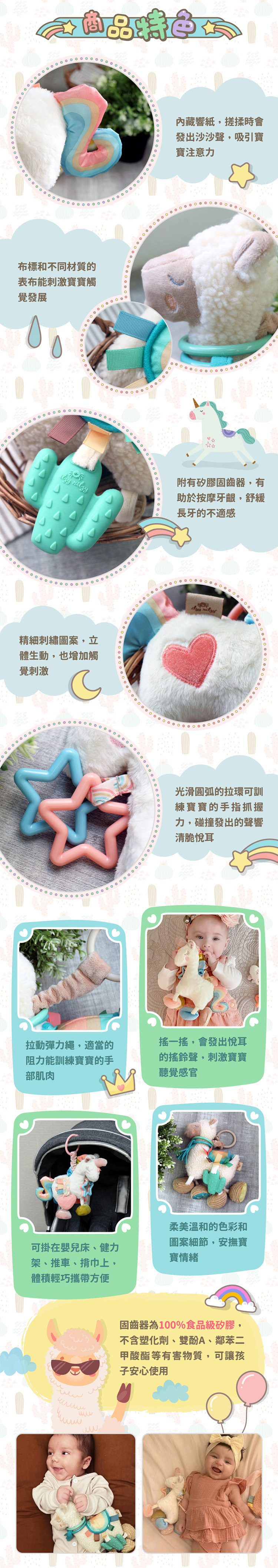 -內藏響紙,搓揉時會發出沙沙聲,吸引寶寶注意力