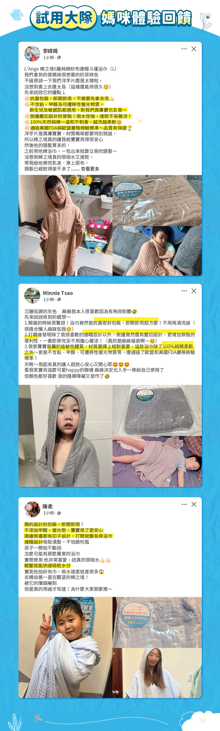 層層把關每一道製作過程,提供最高品質的產品。商品經過清洗及高溫烘乾再放入「抗菌包裝」,即開即用不用另外清洗,感受最天然與純淨的觸感!