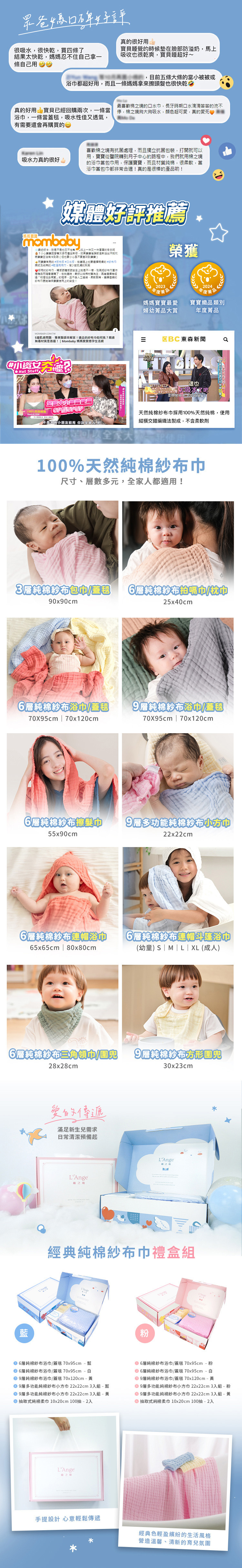 透氣親膚,超強吸水力,觸感輕柔舒適!多款尺寸/層數可選擇,多功能方便使用!