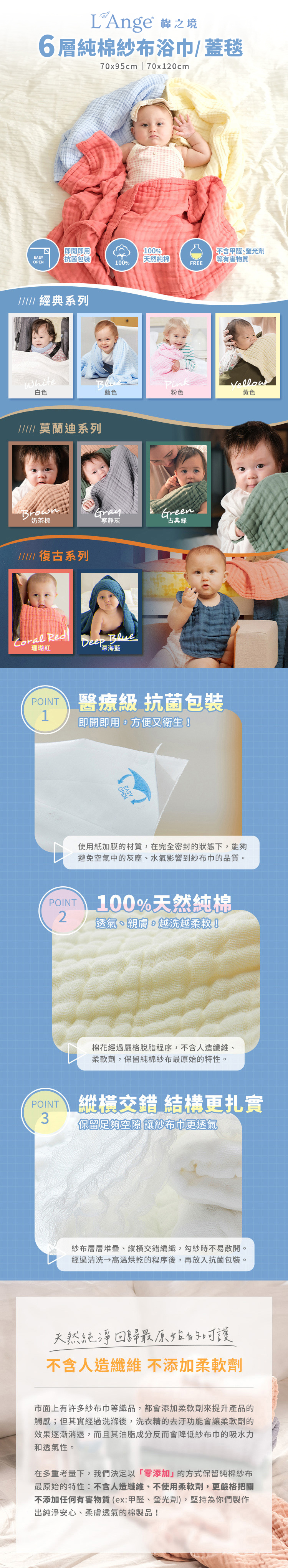 -100%天然純棉,易洗易乾,越洗越柔軟