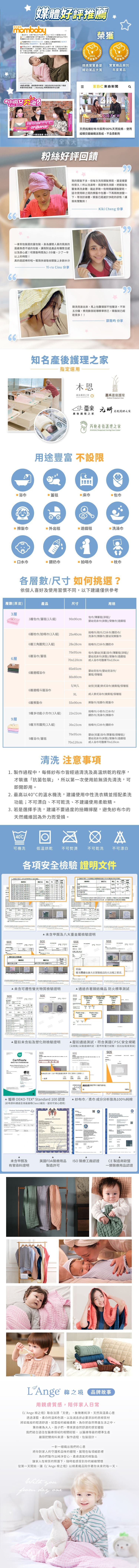 層層把關每一道製作過程,提供最高品質的產品。商品經過清洗及高溫烘乾再放入「抗菌包裝」,即開即用不用另外清洗,感受最天然與純淨的觸感!