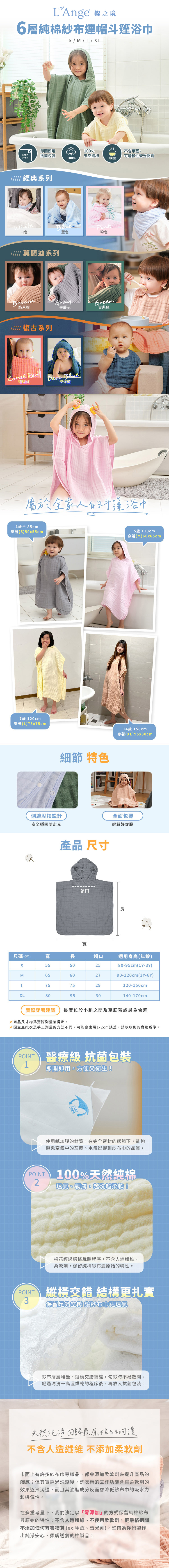 |L'Ange 棉之境 6層純棉紗布連帽斗篷浴巾-多款可選|