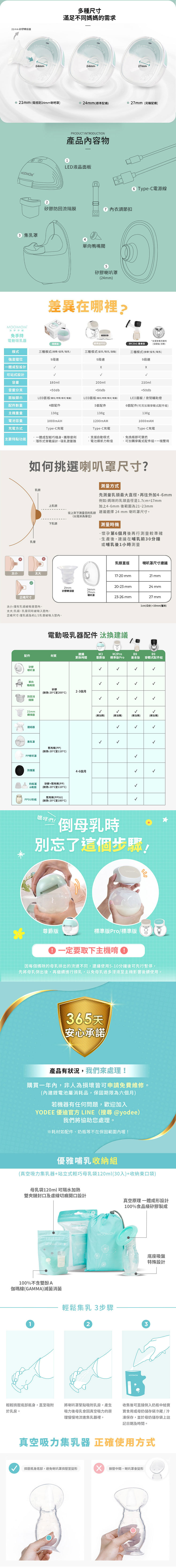 內容物:主機、Type-C電源線、矽膠喇叭罩24mm、單向鴨嘴閥x2、集乳罩、矽膠隔膜、內衣調節扣