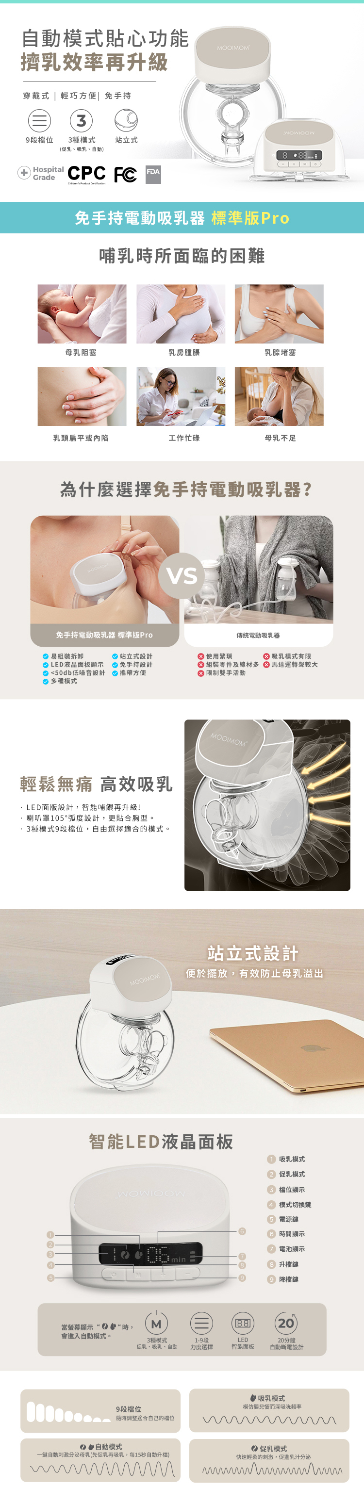 13.標準版Pro集乳罩設計為可站立式,便於擺放;而標準版集乳罩設計為不可站立式。兩者配件可通用,功能相同,不影響使用效果。