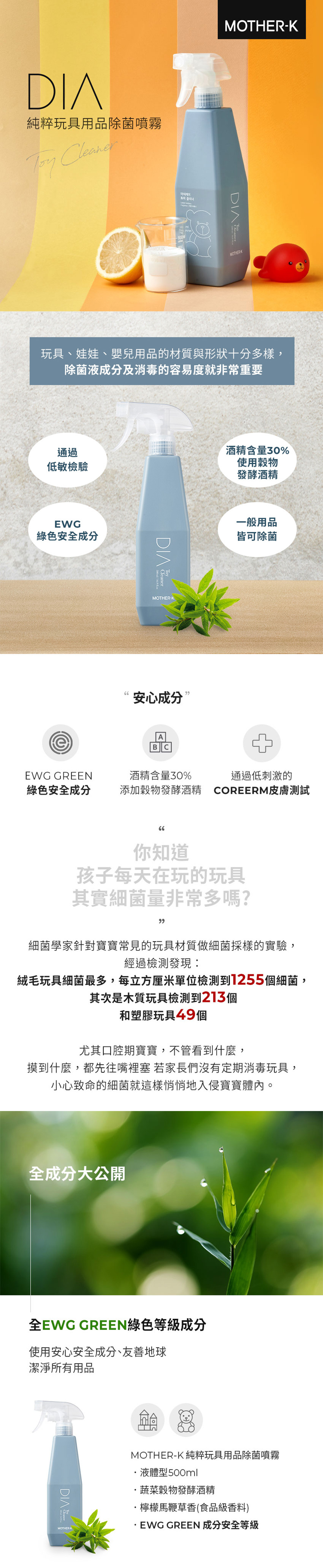 ▪ 商品:【MOTHER-K】DIA 純粹玩具用品除菌噴霧 500ml