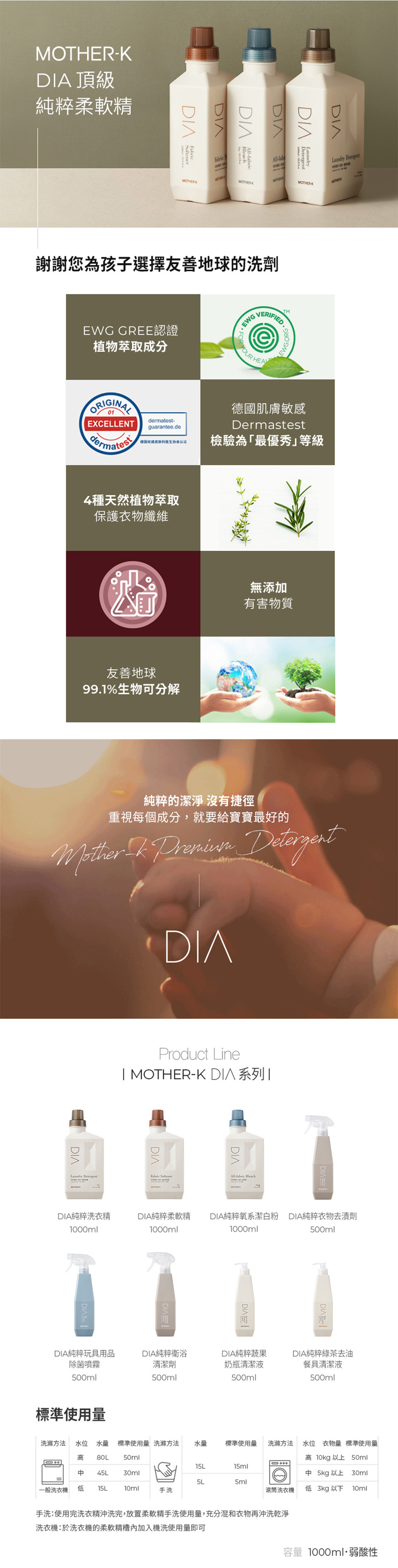 ▪ 商品:【MOTHER-K】DIA純粹柔軟精1000ml
