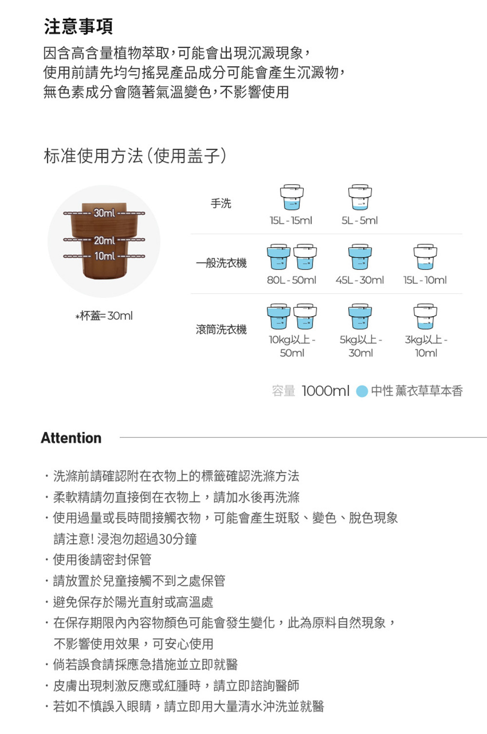 •柔軟精請勿直接倒在衣物上,請加水後在洗滌