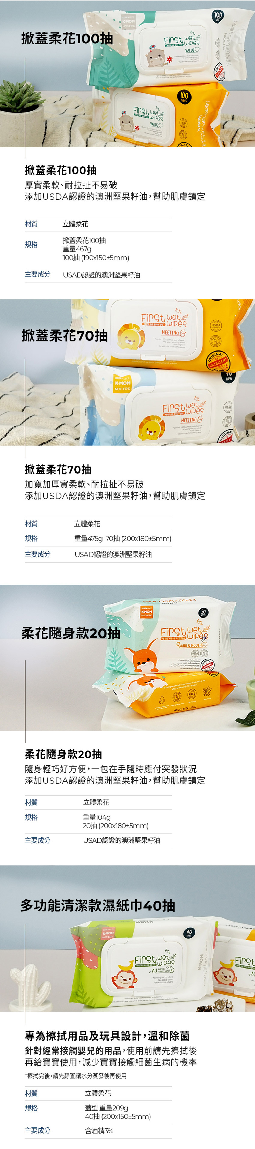 ▪ 規格:輕巧款10抽/攜帶款30抽/多功能清潔款40抽/掀蓋柔花100/基本款100抽