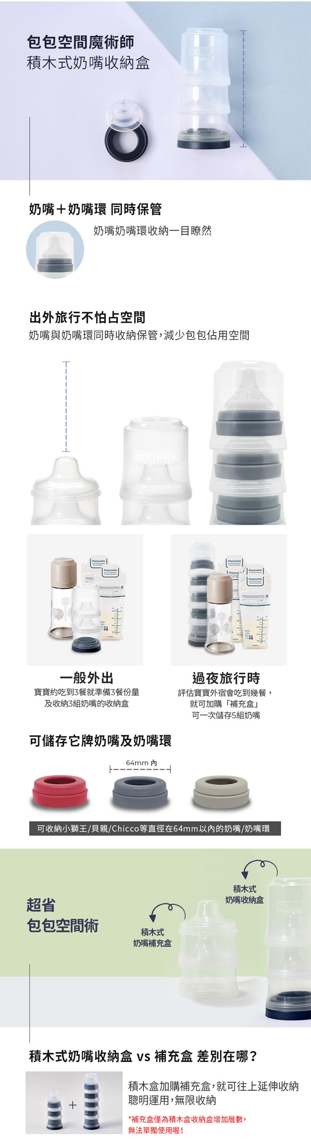 - 保管更衛生, 拿取時不需直接碰到奶嘴頭