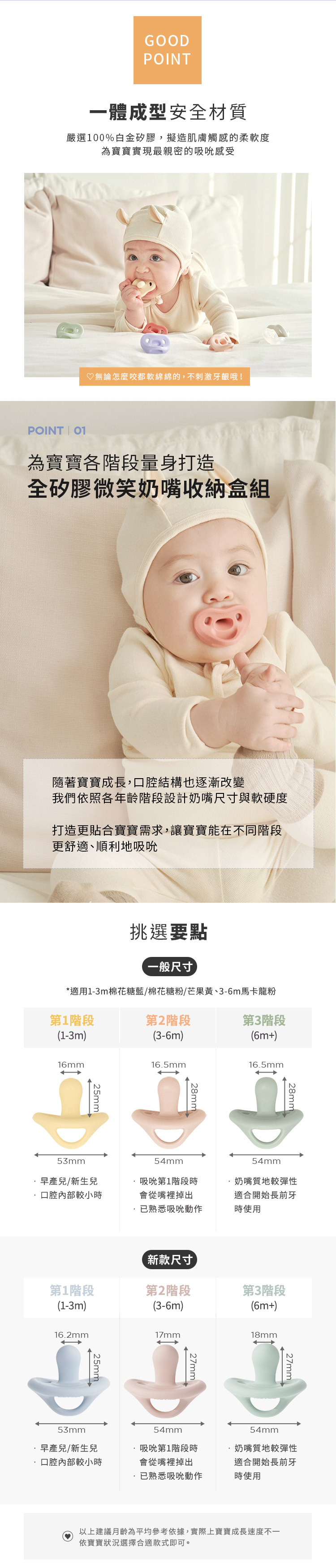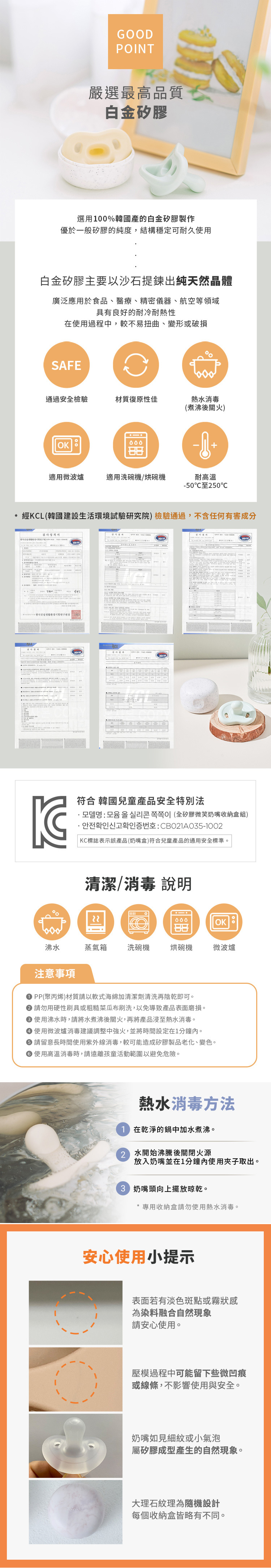 -材質:奶嘴(矽膠-50°C~250°C)、奶嘴盒(PP-20°C~110°C)