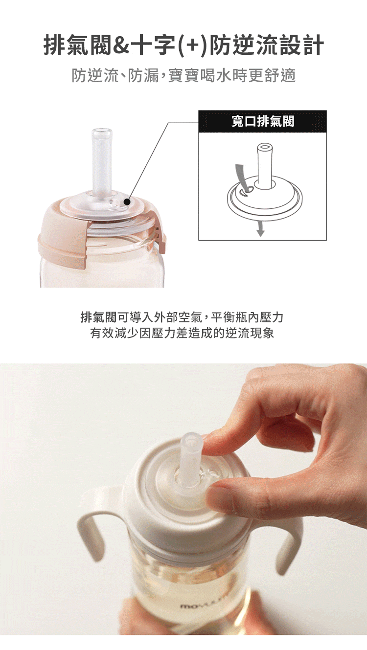 -十字排氣孔、寬口排氣閥,避免寶寶腸胃脹氣、腸絞痛