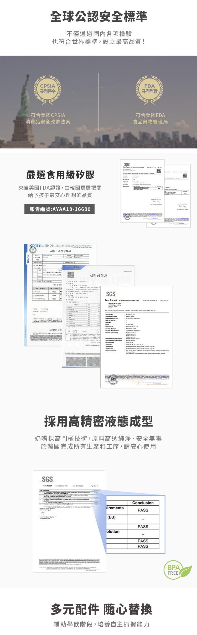 選用食品級矽膠材質,經美國FDA、CPSIA認證,符合全國公認安全標準!
