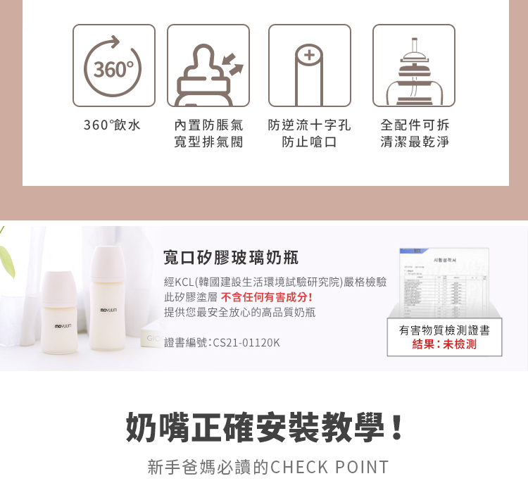 【寬口矽膠玻璃奶瓶】韓國(奶嘴/瓶栓/瓶蓋)、中國(瓶身)