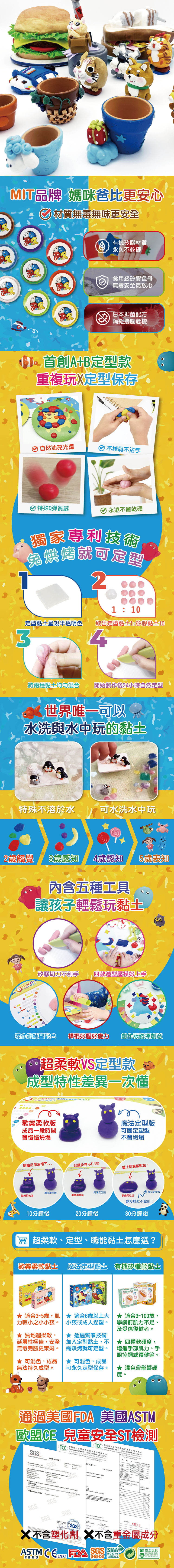 - Q-doh有機矽膠黏土共6色/各35g,附贈黑色矽膠黏土5g,透明定型矽膠黏土20g