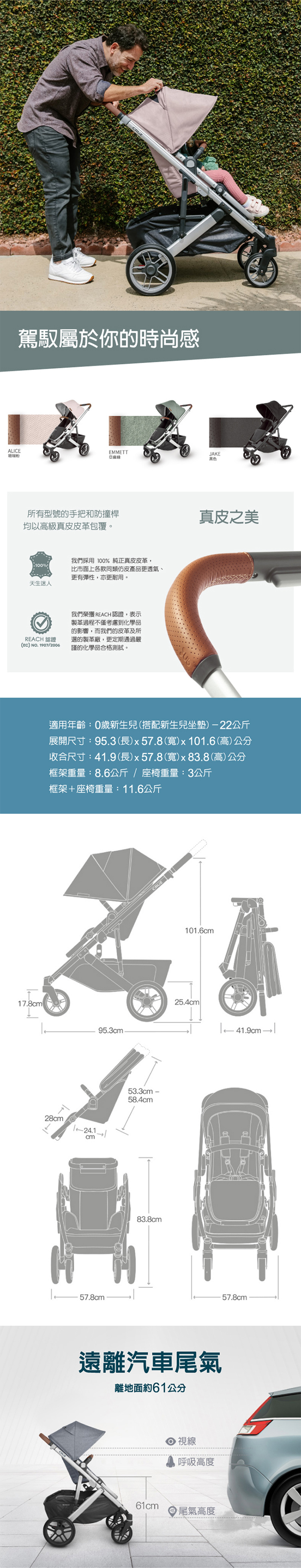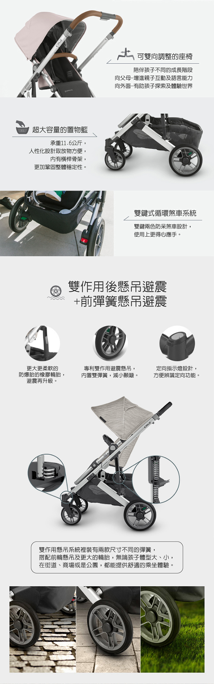 -大尺寸輪胎,可增加避震效果。並採用單腳煞車系統