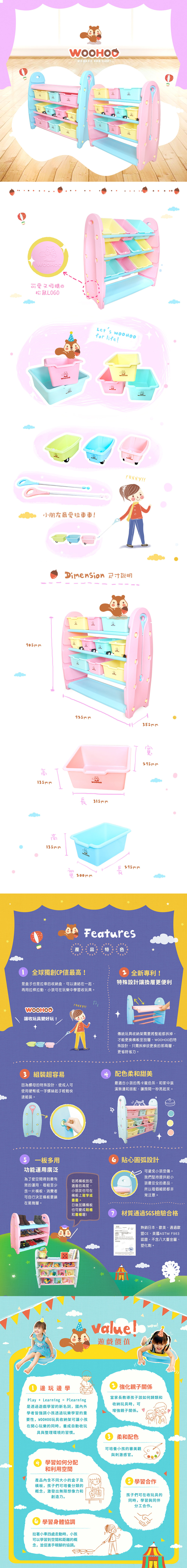 商品: 兒童玩具收納櫃(四層寬)-粉