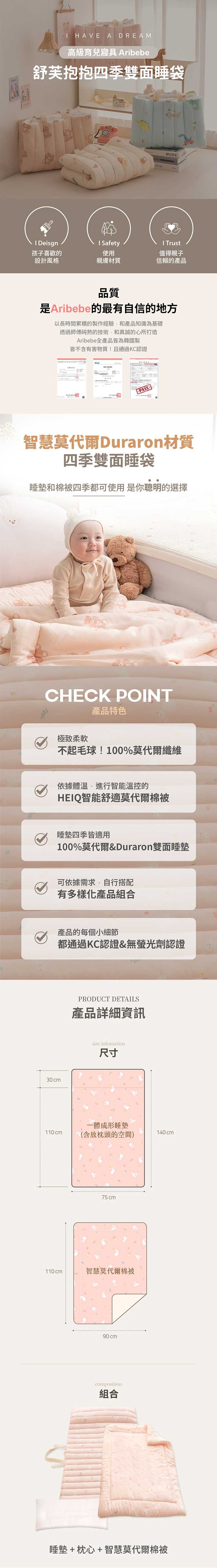 |aribebe 韓國 舒芙抱抱四季雙面睡袋|