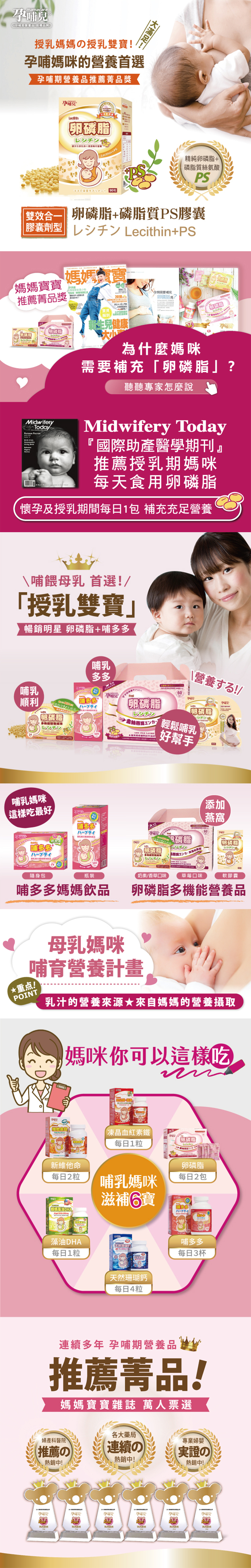 -每顆含800mg精純卵磷脂,更添加磷脂質絲胺酸PS,讓孕哺媽咪輕鬆補充聰明元素!亦讓哺乳更順利!
