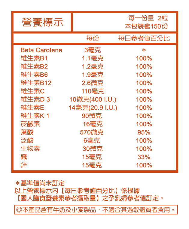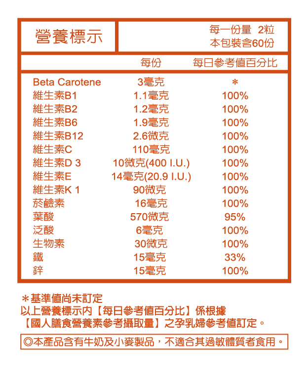 -『懷孕+哺乳期』孕婦綜合維他命,含葉酸及多種維生素礦物質