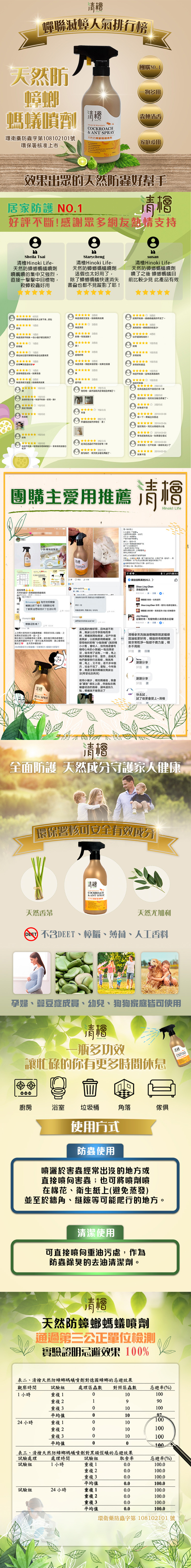 清檜天然防蟑螂螞蟻噴劑”萃取天然香茅等精油,不含薄荷與樟腦成分,但是每個人的症狀有所不同,建議使用前先詢問專業醫師。