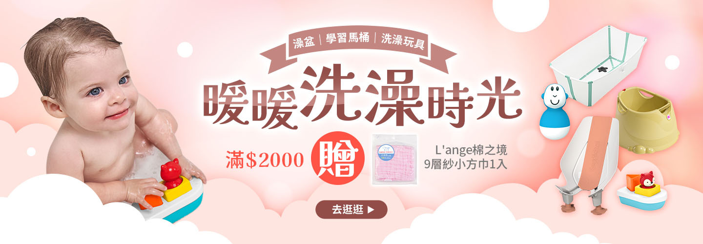 暖暖洗澡時光:澡盆|學習馬桶|洗澡玩具,滿$2000贈L'ange棉之境9層紗小方巾1入-隨機色 (送完為止)